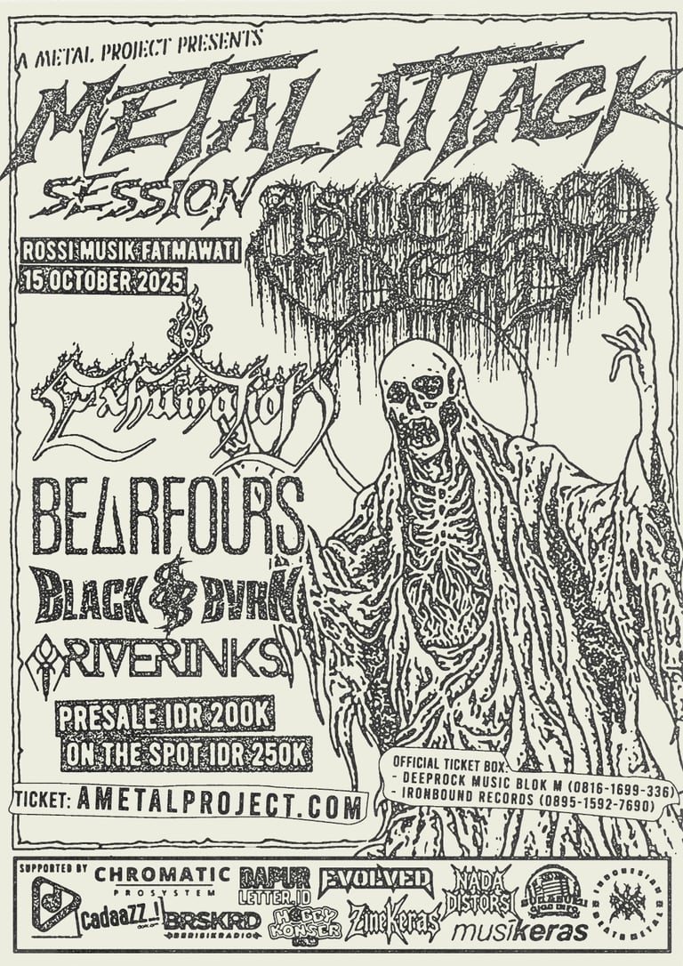 ROSSI MUSIK FATMAWATI, 15 Oktober 2025 featuring Ascended Dead, Exhumation, Bearfours, Blackbvrn & Riverinks